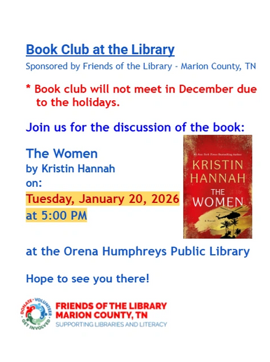 Coming soon - a book club at the Beene Pearson Library in South Pittsburg.